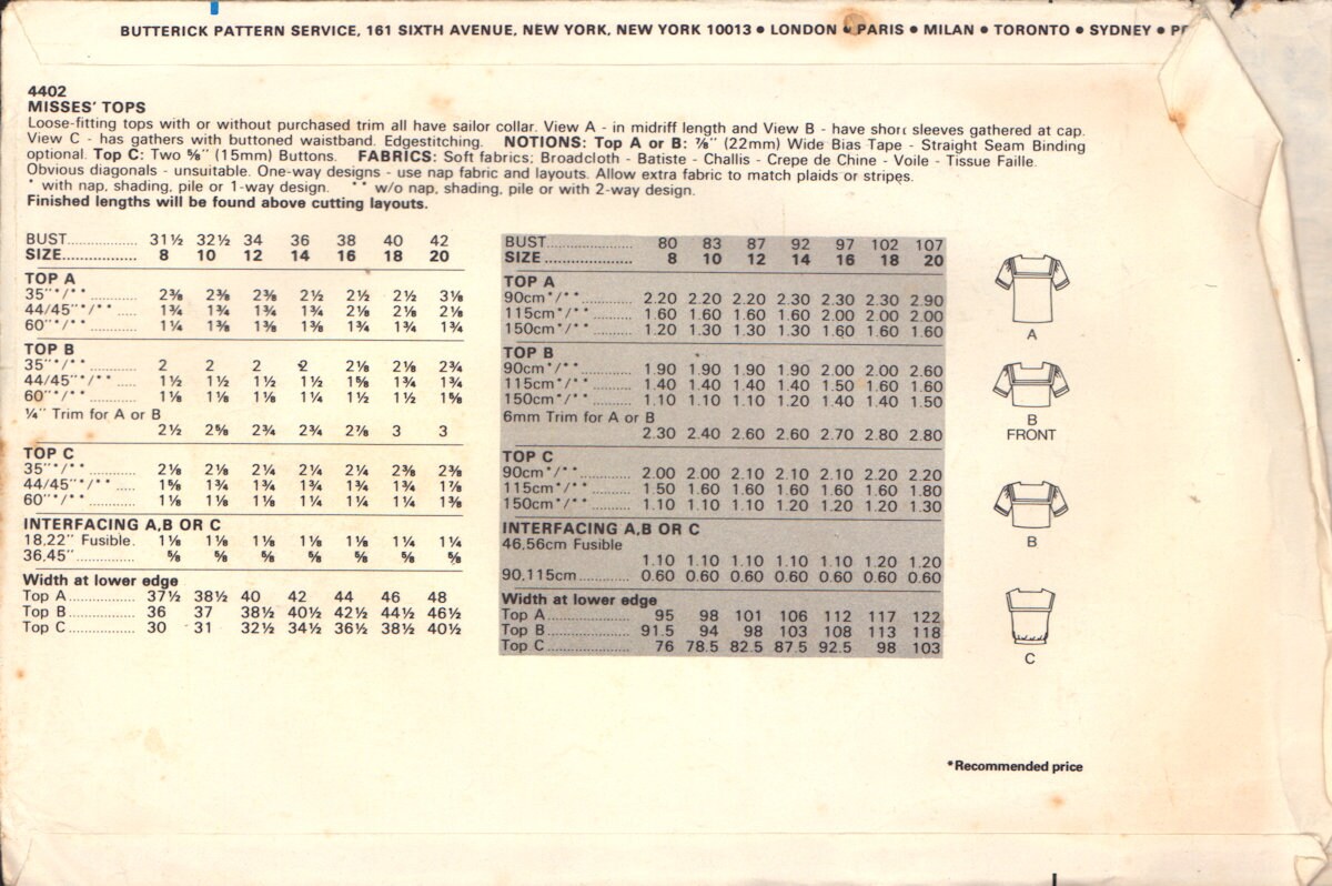 Butterick 4402 Sewing Pattern Women S Top Size 10 Cut Etsy